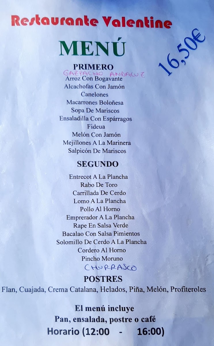 Restaurante Valentin Menu