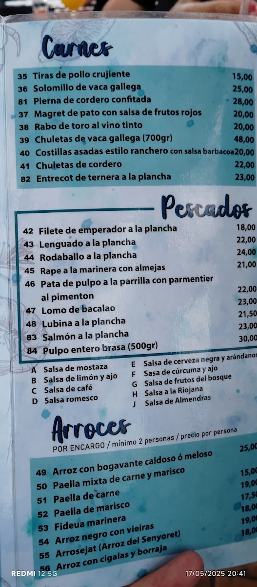 Bar Restaurante Benito Menu